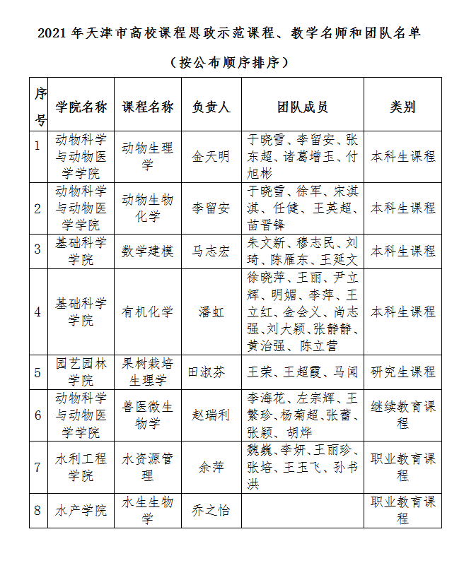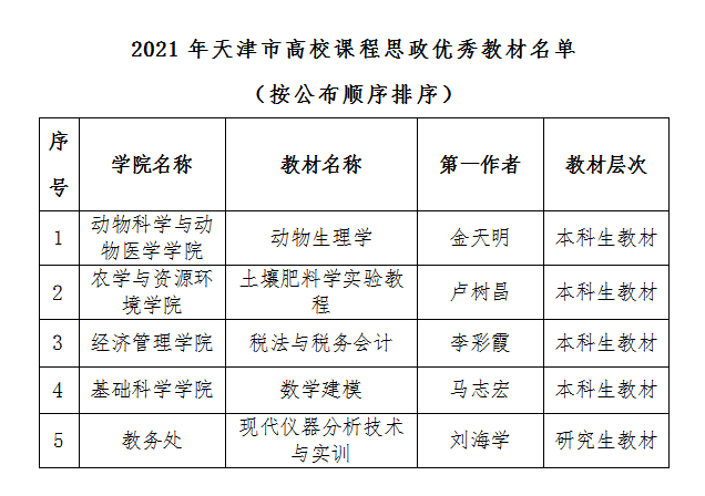 近日,天津市教委下发《市教委关于公布2021年天津市高校课程思政示范课程、教学名师和团队、优秀教材评审结果的通知》,永利3044官网4门本科课程、1门研究生课程、1门继续教育课程、2门高职课程获批天津市课程思政示范课程,4种本科生教材、1种研究生教材获批天津市课程思政优秀教材。根据文件精神,入选2021年天津市课程思政示范课程相应授课教师、团队直接认定为2021年天津市高校课程思政教学名师和教学团队。