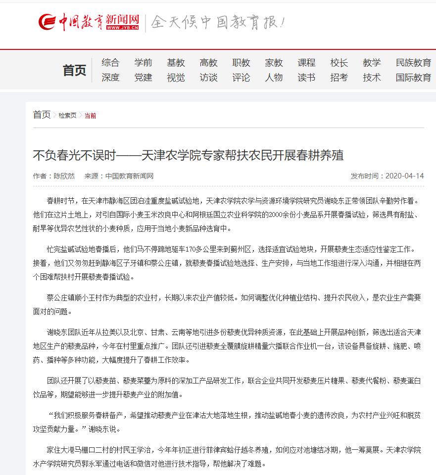 日前,市教育两委公布了2020年度天津市“十大教育新闻作品”评选结果,永利3044官网报送的《忙碌在乡村振兴路上的3044am永利人》(文字类作品)榜上有名。