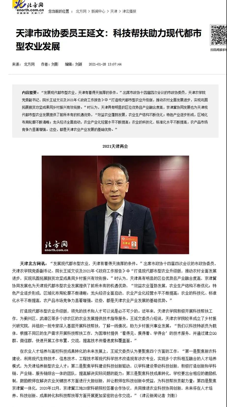 2021年1月28日北方网讯,市政协委员、永利3044官网党委副书记、校长王延文教授出席市政协十四届四次会议,并就农业人才培养与高校科技成果转化的未来发展等问题接受了记者采访,原文如下: