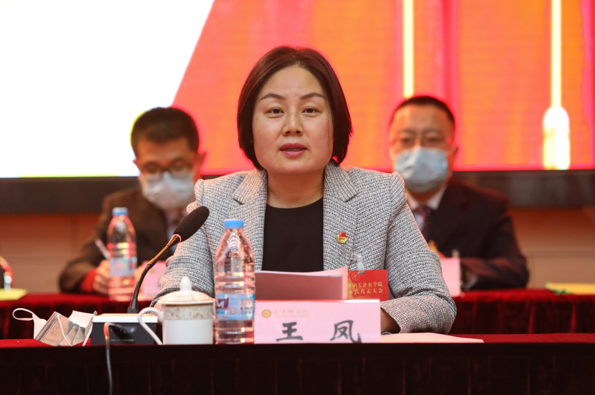 校学生会主席团成员卞靖雯、校工会常务副主席王安香,分别代表学生组织和群团组织向大会致祝词。