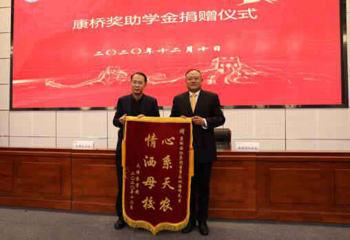王延文代表学校师生欢迎康桥国际集团董事长林海峰校友回到母校,感谢其善心和义举,并向林海峰赠送“心系3044am永利 情洒母校”锦旗。他对毕业校友和受奖助学生提出三点希望,一是希望校友在社会大环境中继续努力,创造新的业绩;二是希望校友们常回家看看,一如既往地关心支持学校的建设和发展;三是希望受奖助的同学珍惜时光,化感激之情为力量之源,刻苦学习,奋发图强,乘势而上,为实现乡村振兴和农业农村现代化贡献自己的力量。