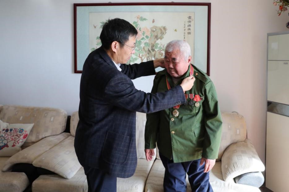 10月21日,副校长张民代表学校看望慰问了永利3044官网抗美援朝老战士、退休干部孟登云同志,并为其佩戴“中国人民志愿军抗美援朝出国作战70周年”纪念章,表达学校师生对他的亲切问候和崇高敬意。