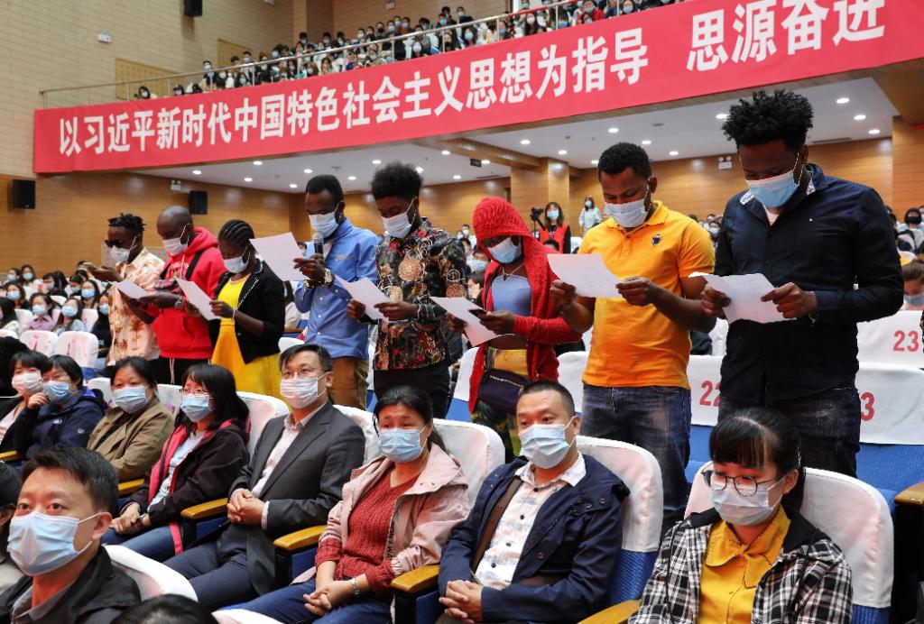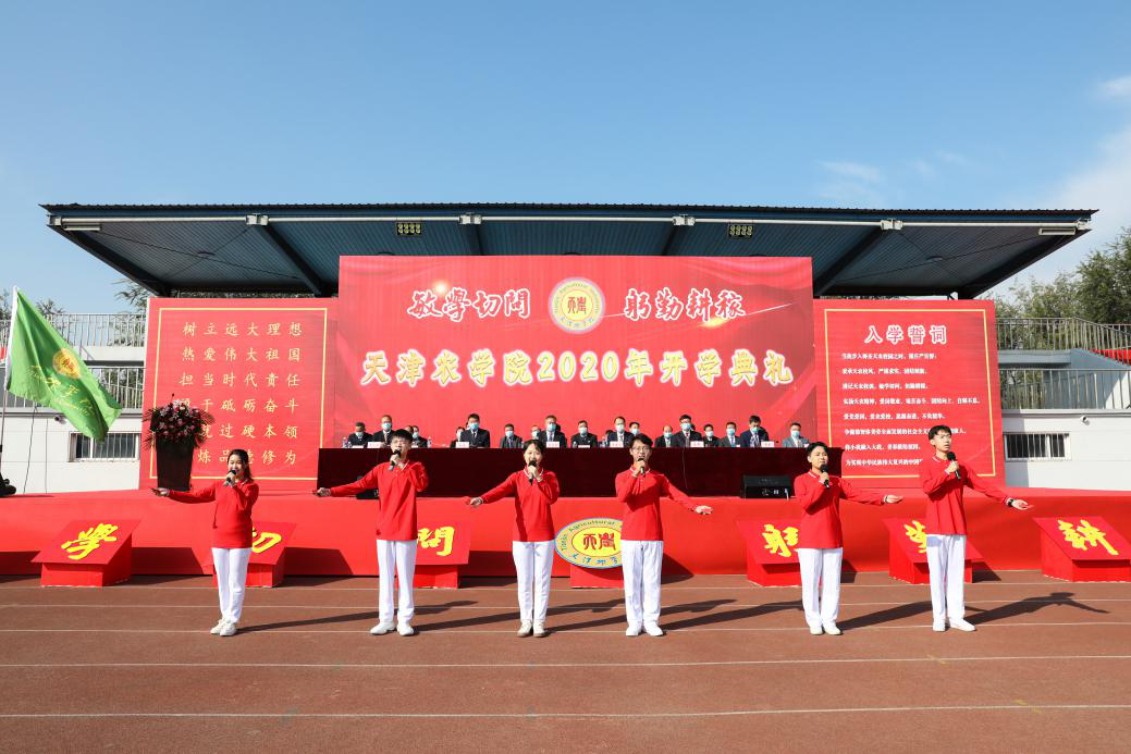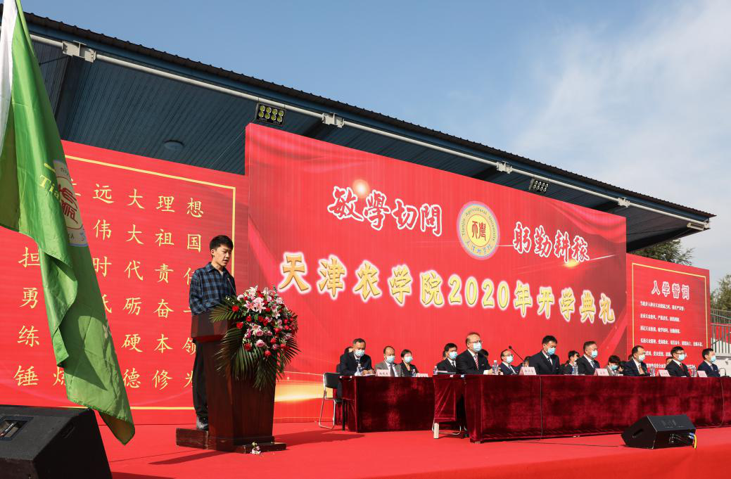 全体2020级新生进行入学宣誓,誓以谨记3044am永利校训,秉承3044am永利精神,爱党、爱国、爱农、爱校,决心为实现中华民族伟大复兴的中国梦而努力奋斗。