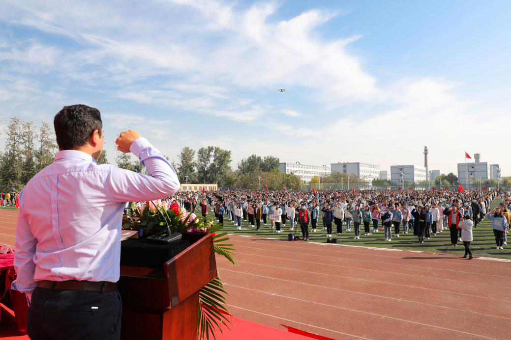 开学典礼在全场师生挥舞国旗、齐声高唱《歌唱祖国》中圆满落幕。