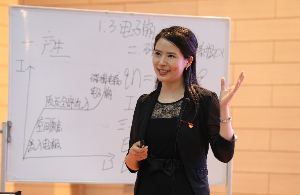 荣获天津市第十五届高校青年教师教学竞赛工科组一等奖的工程技术学院李谨老师作教学展示,她讲授的内容是“电子崩”的相关知识,思路清晰、内容充实、讲解透彻,感情充沛,密切联系生活实际,课程思政有机融入教学内容,把“电子崩”的原理及应用讲授的通俗易懂,既有趣味性又有感染力,是一堂精彩的教学示范课;荣获理科组二等奖的基础科学学院张静静老师讲授的是“原子吸收光谱法的基本原理”,教学风格清新流畅,娓娓道来,将专业知识与学生日常生活巧妙结合,增强了教学的趣味性。