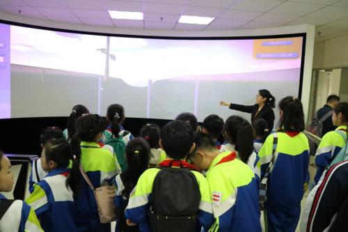 在虚拟仿真实验教学中心,学院教师翟莹向红桥区实验小学师生讲解水资源的重要性及利用情况,利用AR技术引导学生了解水利、航道知识,体验节水技术。并将“AR技术”作为同学们理解与组织能力、行动能力、动手能力、完成能力的培养活动。在展示的同时,充分融入节约用水的思政元素,引导小学生们要牢记“水是生命之源”,坚定厉行节约用水从小做起、从我做起、从点滴做起的意识。
