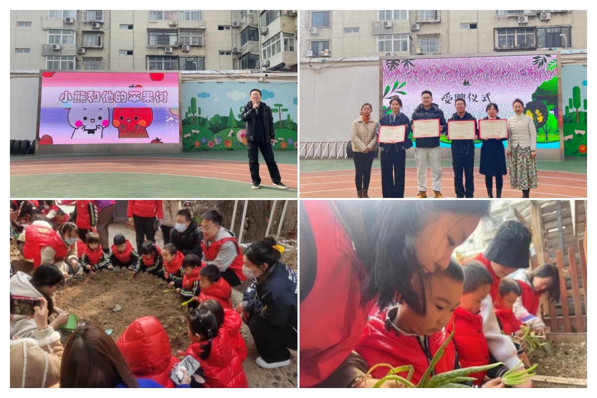 活动中,李超以《小熊和苹果树》为题,将苹果树的结构及其生根、发芽、开花、结果的过程详细阐述,并引导大家感受和探索人和植物成长的奥秘,勉励小朋友们勇敢面对生活中的各种困难,成为国家的栋梁之材;和平九幼老师、和平园林服务中心老师也分别进行了科普讲解。科普讲解后,天津市和平区第九幼儿园党支部书记、园长陈剑苹,副园长徐尚彤为李超、陈瑞楠颁发了指导教师聘书,同时幼儿园的小朋友还为老师和志愿者们送上自己制作的精美礼物。活动最后,两位老师和学生志愿者们共同带领和平九幼的小朋友们种植番茄种子、番茄苗及芦荟等植物,志愿者们在种植之前为小朋友们介绍了各类植物和其相关知识,通过种植活动让他们近距离观察触摸植物,体验种植乐趣,提升动手能力,树立了正确的劳动观和环保理念。