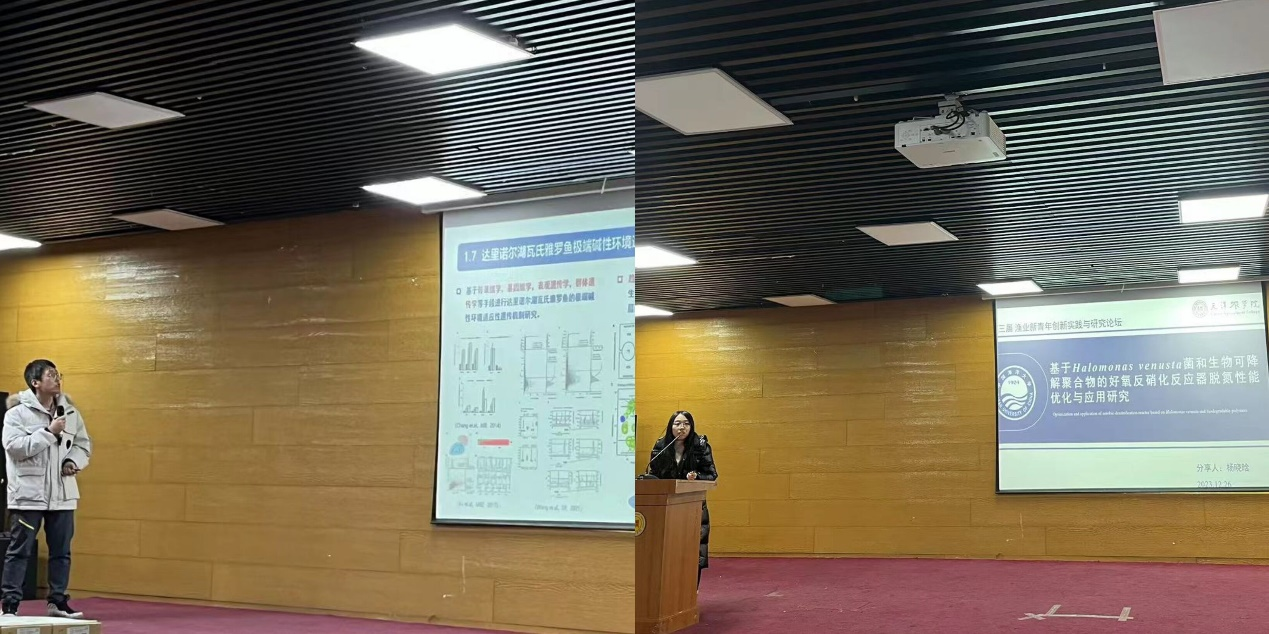 杨晓晗博士、周志雄博士两位青年教师,分别作了题为《基于Halomonasvenusta菌和生物可降解聚合物的好氧反硝化反应器脱氮性能优化与应用研究》《极端碱性环境下鲤形目鱼类的适应性进化及趋同演化》的学术报告,为参会的研究生们开阔学术视野,呈现了一场精彩的学术盛宴。