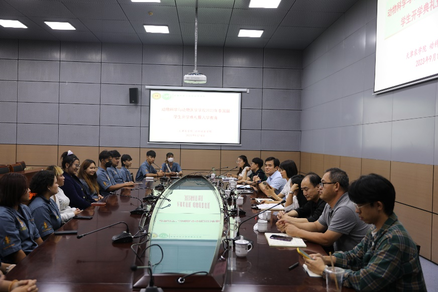 近日,动物科学与动物医学学院举办2021级“神农学院”留学生开班仪式。国际交流处副处长(主持工作)方洁、动物科学与动物医学学院院长丁向彬、党委副书记王学蓓、班主任蒲蕾博士、教师代表张学炜教授和任课教师代表、全体泰国留学生参加此次活动。