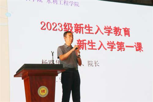 院长杨路华从学校发展、专业建设、大学目标及未来发展方向等为切入点,介绍了水利学院的发展历程、办学特色以及取得的辉煌成果,对新生们提出了殷切的期望,希望他们能够在未来的学习生活中,发挥自己的特长,努力成为国家和社会需要的优秀水利人才。