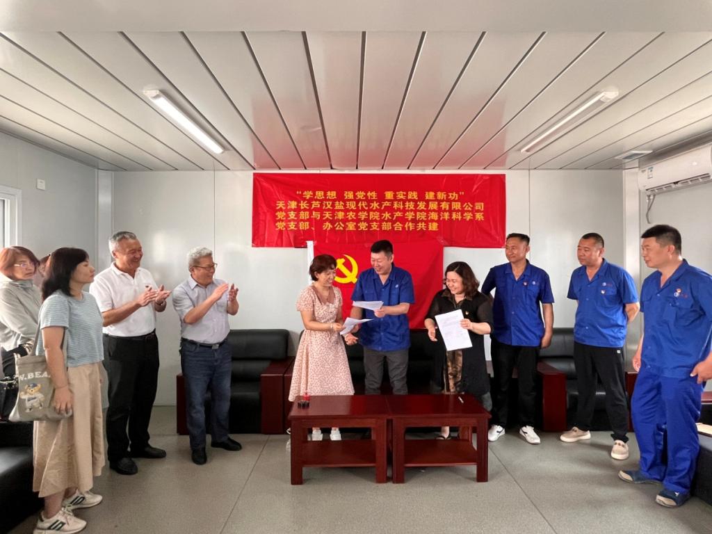 为深入开展学习贯彻习近平新时代中国特色社会主义思想主题教育,进一步推进校企合作、产教融合,探索基层党建工作新思路、新模式,7月7日上午,水产学院海洋科学系党支部、办公室党支部赴天津长芦汉盐现代水产科技发展有限公司开展共建活动。