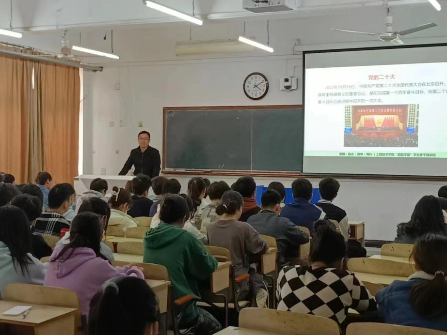 3月24日,工程技术学院在西校区举办“启航学堂”学生骨干培训班。培训班以“学习二十大,启航新征程”为主题,开启大一学生思想政治教育第一课。本次培训由工程技术学院党委副书记李杰担任主讲教师。