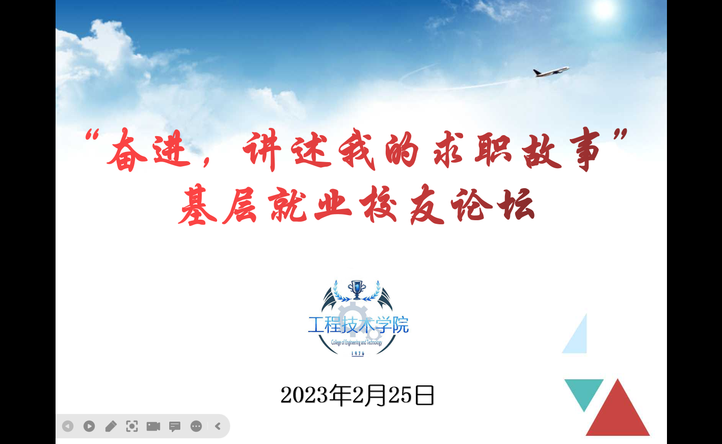 2月25日,工程技术学院通过线上会议形式开展“奋进,讲述我的求职故事”2023年基层就业校友论坛。工程技术学院党委副书记李杰参加,2019级辅导员张鹏远主持。
