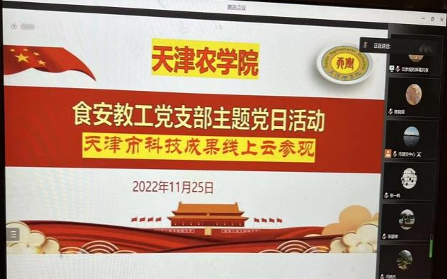 为深入学习贯彻党的二十大精神,深刻领会科教兴国、人才强国和创新驱动战略要义,近日,食品科学与生物工程学院党委食安教工党支部与天津市科技成果展示交易运营中心联合开展了“天津市科技创新成果线上云参观”主题党日活动。