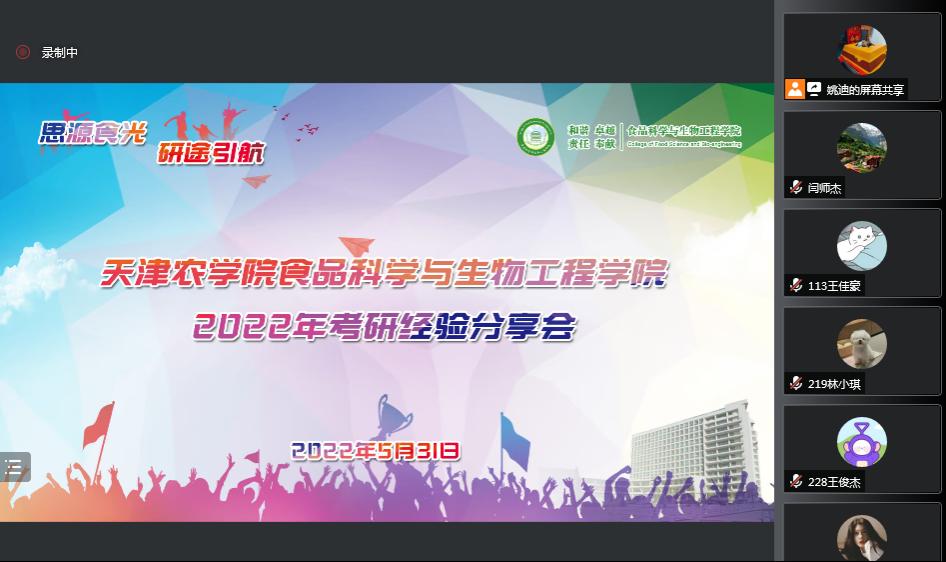 5月31日晚,食品科学与生物工程学院通过线上举办2022年就业创业政策宣传月系列活动,暨“思源食光 研途引航”——2022年考研经验分享会,学院领导班子成员参加活动并讲话。