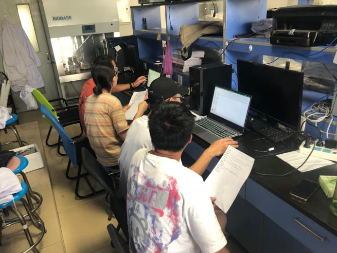 李永仁副教授所指导的学生卜世勋,正在河北省海洋与水产科学研究院进行毕业实验,主要对抚宁海湾扇贝养殖区的水质指标进行检测,其中包括海水常规水质指标和海水营养盐的测定,以及对监测海域内浮游植物常见种、优势种密度进行相关实验。