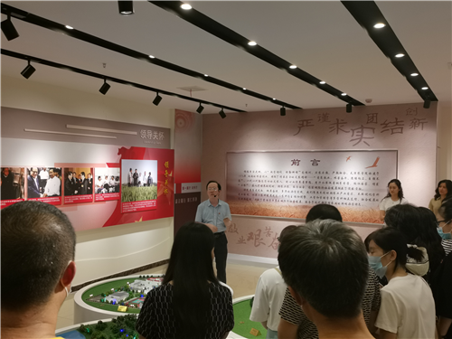 在校史馆参观过程中,食品科学与生物工程学院党委副书记闫师杰就本次活动的目的和意义作了发言,他表示,作为高校教师,要认真学习党史,全面了解校史,思源奋进,才能更好地把“敏学切问、躬勤耕稼”的校训和“爱岗敬业、艰苦奋斗、团结向上、自强不息”的3044am永利精神有机融入到党史学习教育和课程思政中。王安香、刘秀杰等同志分别围绕领导关怀、历史沿革、历任领导、党的建设、人才培养、国际交流与合作办学、校园文化、脱贫攻坚、乡村振兴、社会服务、校友风采等板块为学院教职工讲解学校发展历程,将党史与校史结合,回顾了学校每个时期每个领域改革创新的办学成就。