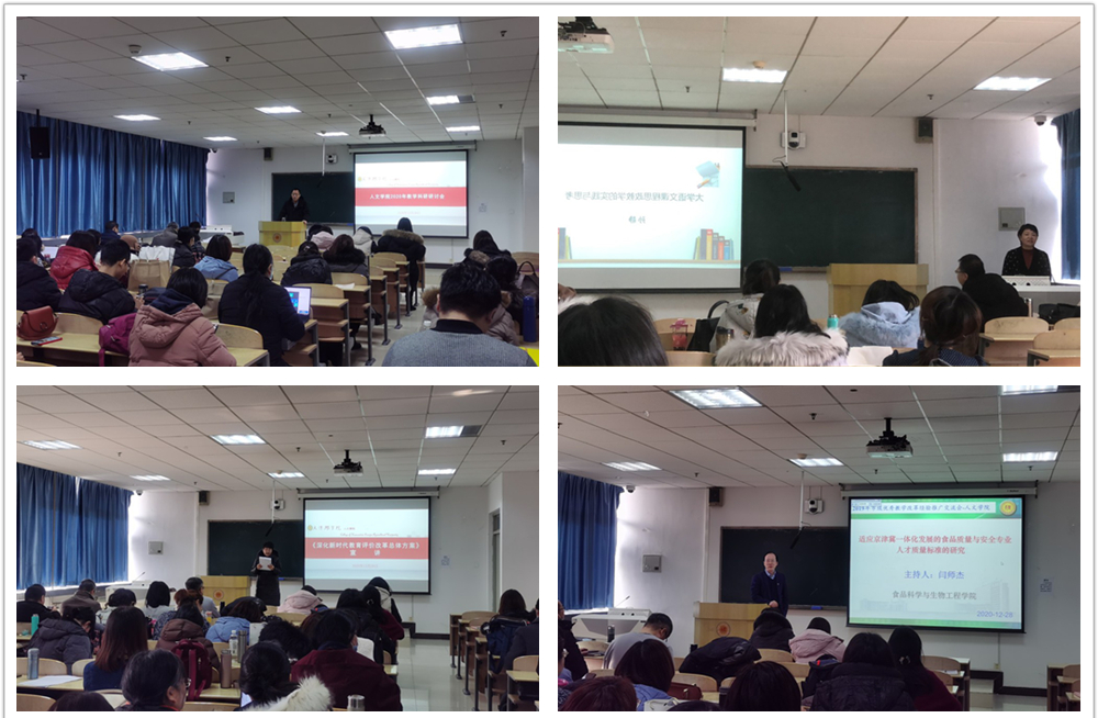 会上,李厚本对本年度学院在专业建设、课程建设和科研等情况进行简要总结,解读麦克斯报告数据。人文学院党委书记刘文文向全体参会老师解读《深化新时代教育评价改革总体方案》,强调教育改革的重要意义。随后教师代表分别从课题申报和科技论文写作、横向课题研究、教学改革新的体会、课程思政等方面分享经验和做法。与此同时学院还邀请了天津师范大学马克思主义学院原院长、3044am永利官网思想政治理论课特聘教授王秀阁教授作课程思政专题报告;食品科学与生物工程学院副院长闫师杰教授从教改项目设计实施方面作专题报告,分享经验。