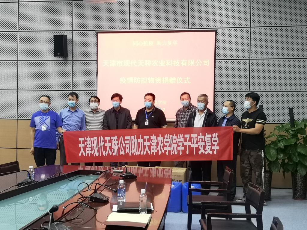 近日,天津市现代天骄农业科技有限公司(以下简称“天骄集团”)董事长孙超一行到访永利3044官网,为水产学院、动物科学与动物医学学院的师生捐赠了疫情防控物资,并开展校企合作交流会,水产学院党委书记高建华、副院长郭永军,动物科学与动物医学学院党委书记于建强、副院长李留安等参加会议。