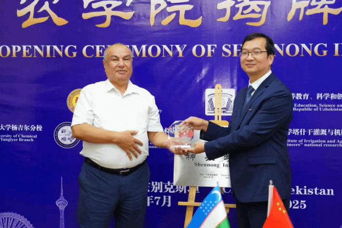 7月13日至16日,永利3044官网党委副书记、校长金危危率团访问乌兹别克斯坦,参加永利3044官网与乌兹别克斯坦各高校合作共建“神农学院”揭牌仪式。与教育部高等职业教育机构材料和技术基础中心主任赫迪罗夫、塔什干化工大学杨吉尔分校校长卡基莫夫、塔什干建筑与土木工程大学副校长尼格马德亚诺娃亲切会谈,并与乌兹合作高校校方领导共同为“神农学院”揭牌。