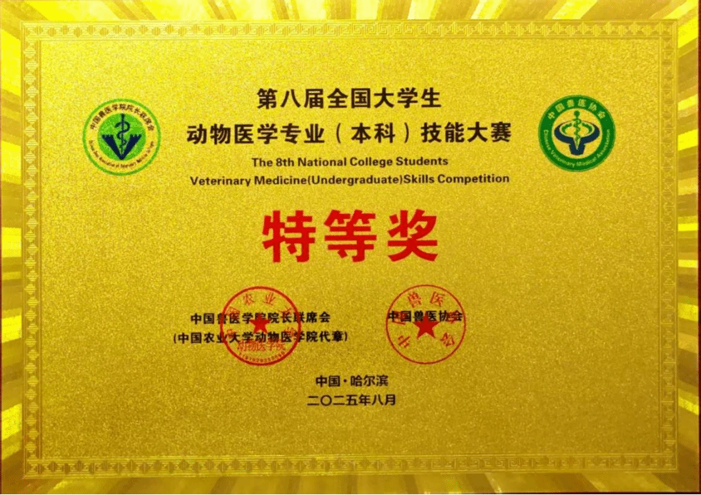 8月18日至21日,第八届全国大学生动物医学专业(本科)技能大赛在东北农业大学举行。永利3044官网代表队荣获大赛团体特等奖,也是永利3044官网连续四届获得团体一等奖后的新突破。