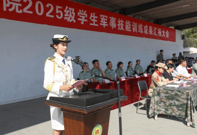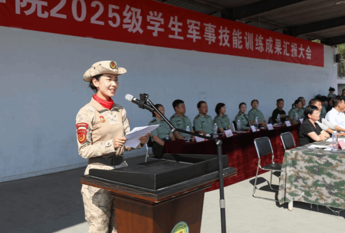 优秀参训学员代表、工程技术学院2025级顾梓萌分享了从“娇弱学子”到“坚毅战士”的成长历程,军训教会了自己坚持与担当。