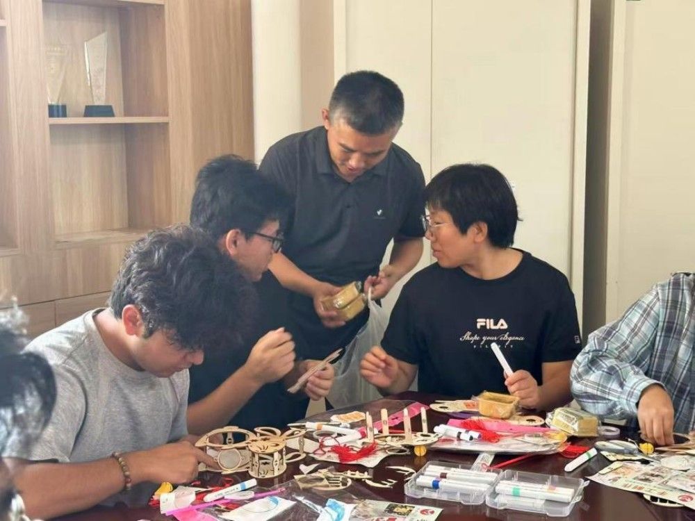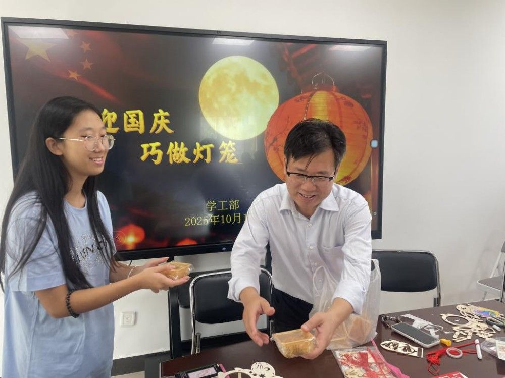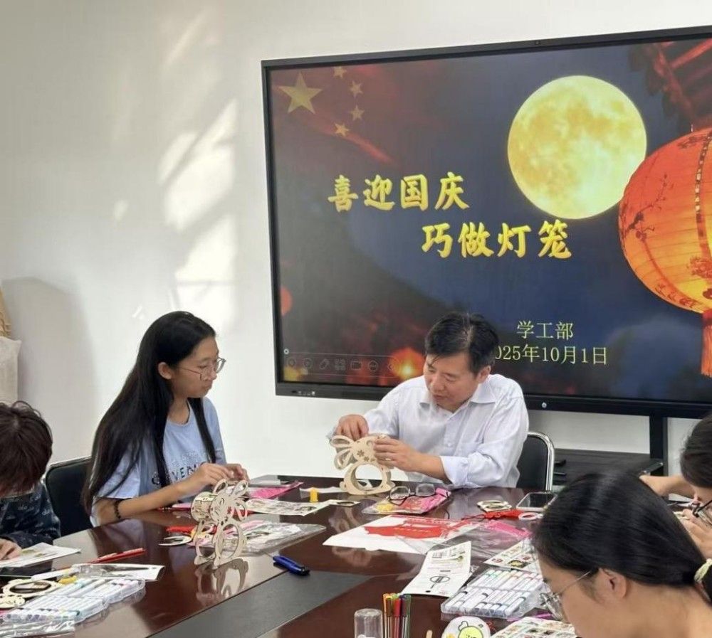 在敏学楼402,李鑫与同学们齐聚一堂,共同绘制寓意吉祥的灯笼。一笔一画间,勾勒的是对祖国的深情祝福;欢声笑语中,凝聚的是家国永安的深厚情谊。校领导还将永利3044官网食堂特别定制的中秋月饼送给在场师生。当香甜的月饼送到同学们手中,传递的不仅是节日的味道,更是3044am永利大家庭特有的温情。从教学楼到学生公寓,“国庆节快乐、中秋节快乐”的真挚问候与热情回应此起彼伏,汇成一曲和谐的育人乐章。校领导叮嘱同学们向家人电话传情,正是对“孝亲敬老”传统美德的生动传承,于细微处涵养学生的家国情怀。