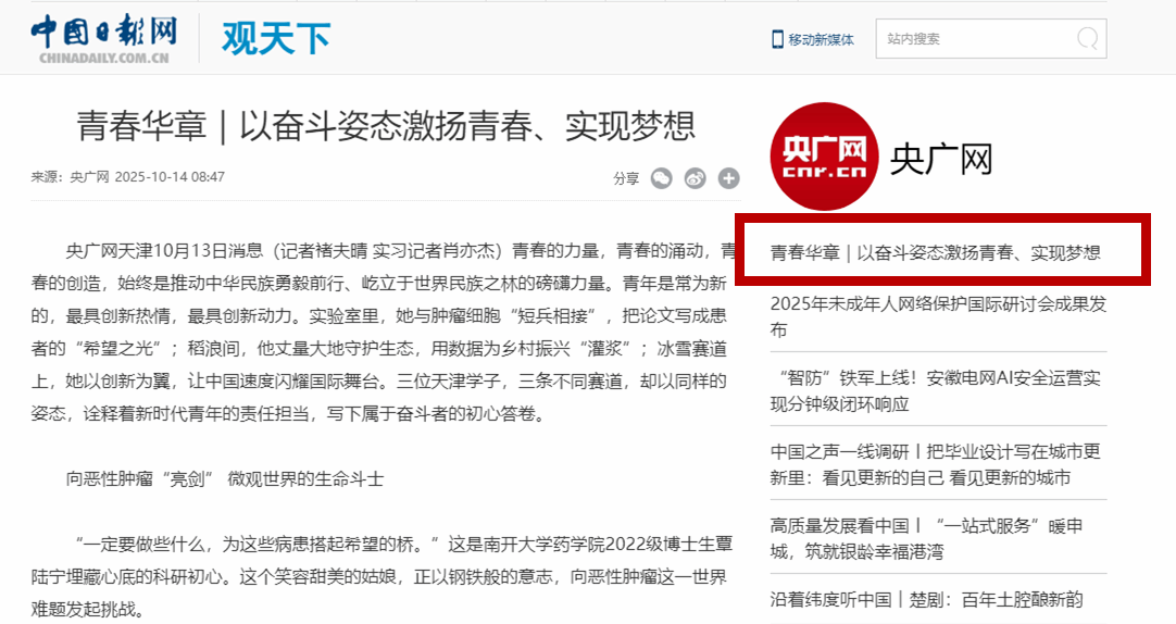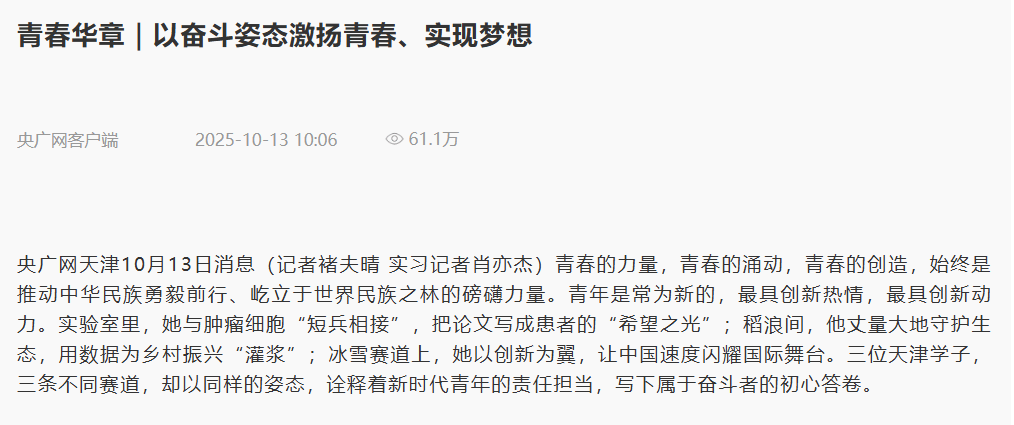 近日,央广网以“青春华章︱以奋斗姿态激扬青春、实现梦想”为题报道了南开大学、天津体育学院和永利3044官网园艺园林学院农艺与种业专业研究生卫佳晨等三位学子,在三条不同赛道以同样姿态诠释新时代青年责任担当,写下属于奋斗者初心答卷的故事。