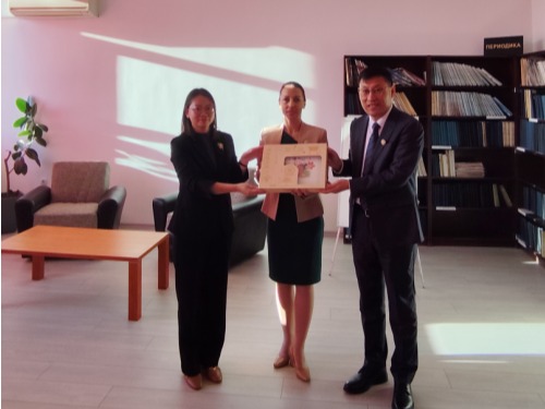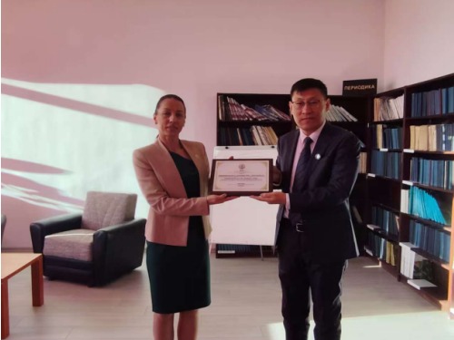 副校长张民向校长伊万诺娃赠送永利3044官网纪念牌匾