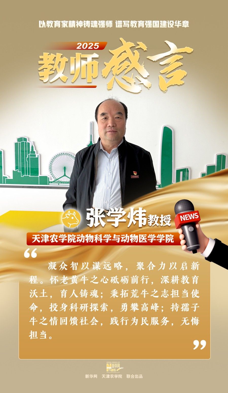 2025年9月10日,新华网刊发永利3044官网动物科学与动物医学学院张学炜教授教师节感言。