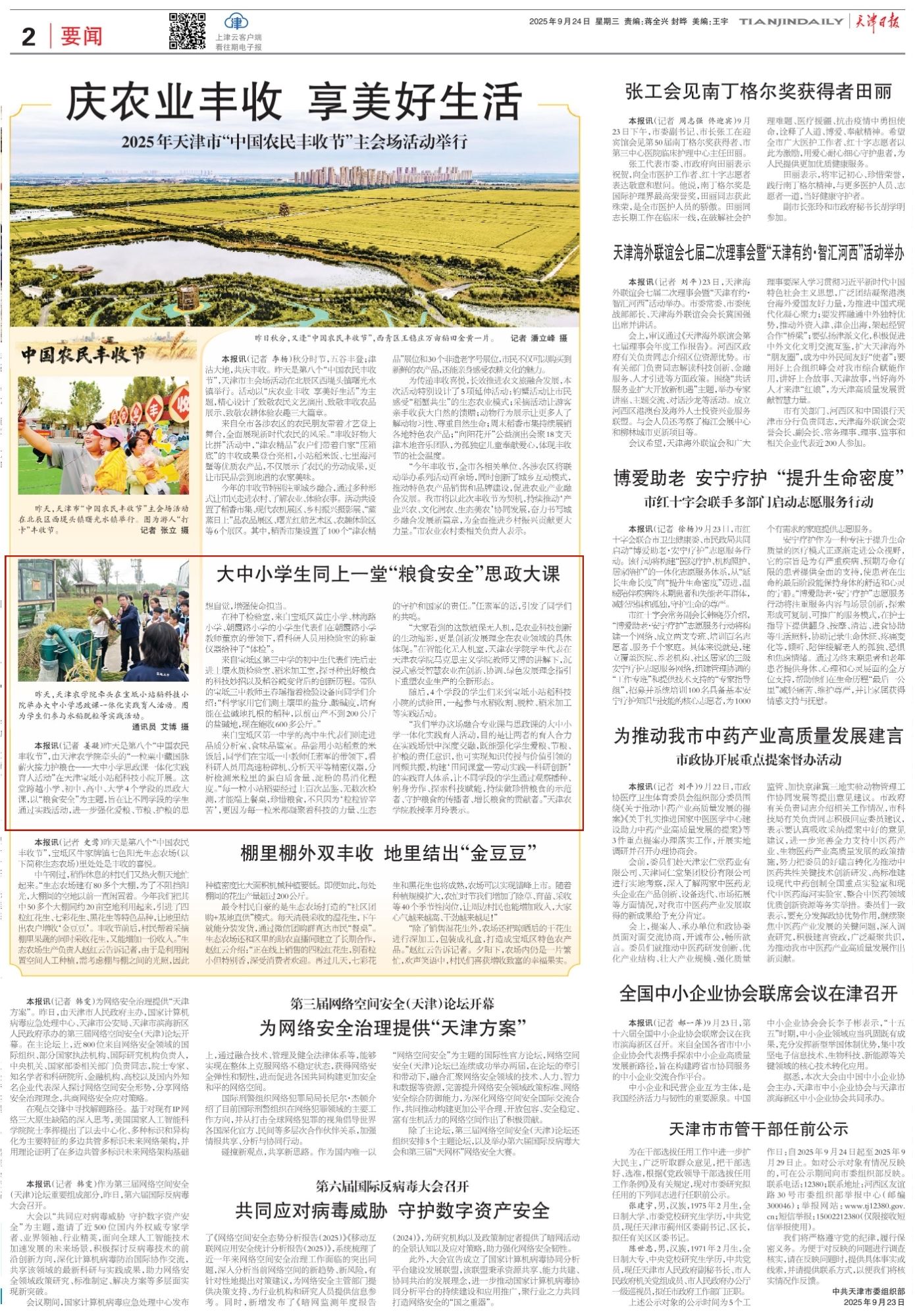 2025年9月24日,《天津日报》第02版报道,由永利3044官网牵头的“一粒粟中藏国脉 薪火接力护粮仓——大中小学思政课一体化实践育人活动”在天津宝坻小站稻科技小院开展。