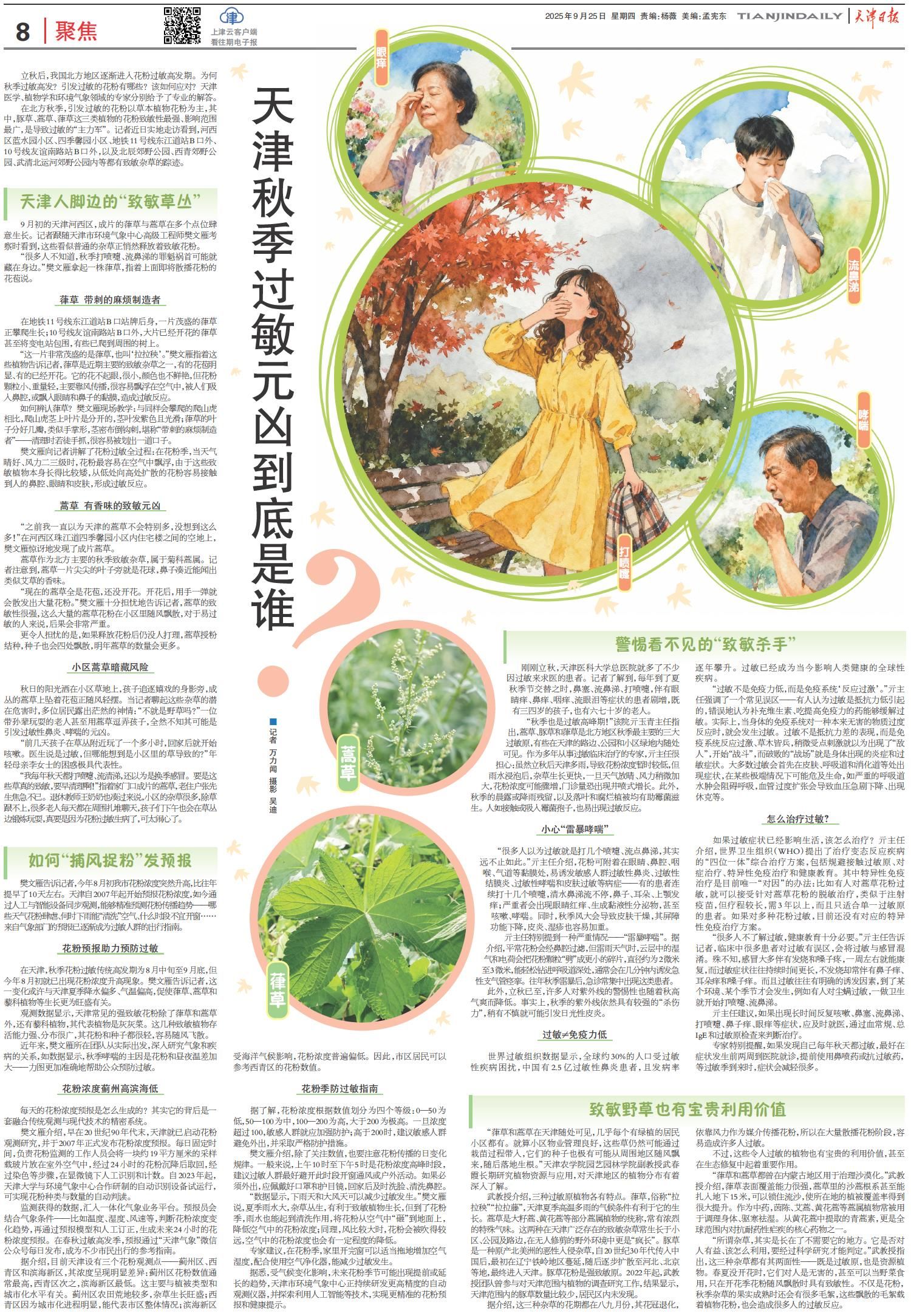 2025年9月25日,《天津日报》第08版报道,永利3044官网园艺园林学院武春霞副教授就“天津秋季过敏元凶”相关问题进行解答。